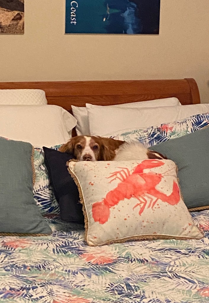 One of the first things a new Brittany owner learns is that they are as hardheaded as they are lovers. They are independent dogs who will snuggle in a lap for some petting, and five minutes later, Chloe will decide she would rather chill in her Orvis bed.