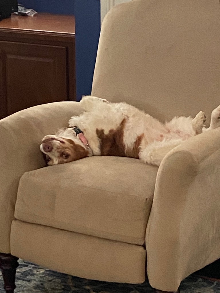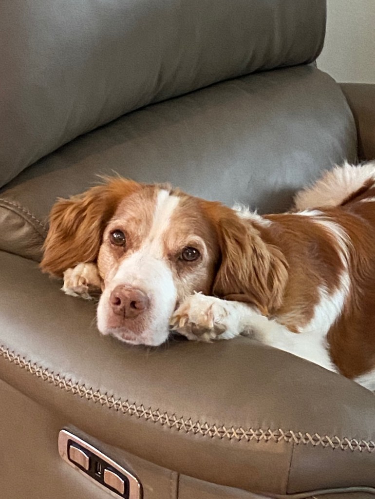 Two years ago, a day or so before Labor Day, Chloe’s owner and breeder of Brittanys, Dawn, contacted me to ask if we would consider adopting Chloe. Dawn and her husband, Mark, fell on some difficult times and could not keep the number of the dogs that were a part of their family.