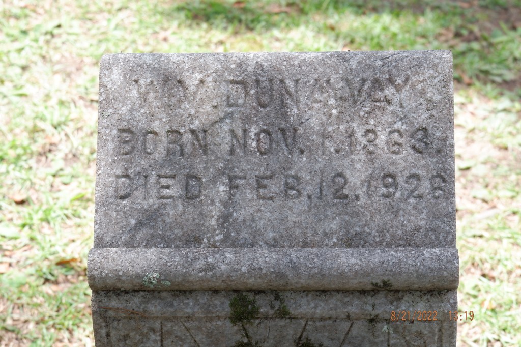 Many members of the modern Dunaway Family line are buried in Wilmer Cemetery, including William Herbert Dunaway and Bessie York Dunaway.