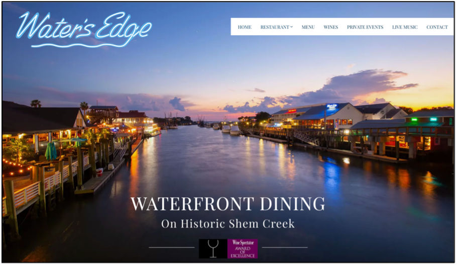 As it was getting toward supper on our first day, we asked the buggy driver about his favorite local place to eat seafood.  I highly recommend this technique—it will likely save you a few dollars and present you with the best food in the city—the food the locals crave.  The buggy driver’s suggestion wasn’t in Charlotte-proper but located on the banks of Shem Creek, in Mt. Pleasant, SC—The Water’s Edge, only 14 miles from Charleston.