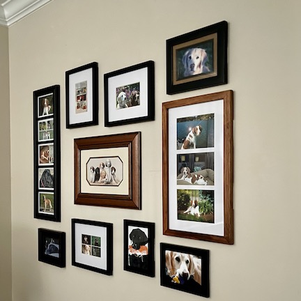 If you have loved and been loved by canines in your lifetime, I know you have hundreds of pictures of them. Frame a few and choose a wall so that each time you go by, you are reminded of the precious gift given to us by the Almighty.