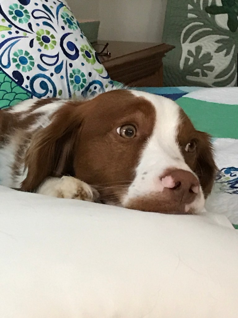 Since Labor Day, 2019, a little Brittany has filled our house with joy, smiles, laughs, and lots and lots of snuggles. Even I get a cuddle every so often when Chloe hops up in my lap and ducks her head under my chin. I call this chin-sugar! Well… what would you call it?